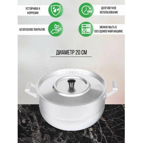 Алюминиевая кастрюля объемом 3 л выполнена в обновленном дизайне - сферическая форма удачно дополнена элегантной канавкой на боковой поверхности. Кастрюля изготовлена из пищевого алюминия, проста в уходе, быстро и равномерно нагревается. Ее преимуществами являются легкость в уходе, высокая устойчивости к царапинам, возможность использования металлических аксессуаров. Кастрюля поставляется с металлической крышкой соответствующего диаметра. Данное изделие производится на заводе "Демидовский" в г.