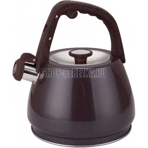 Чайник со свистком, 3,0 л, нержавеющая сталь, ИНДУКЦИОННОЕ КАПСУЛИРОВАННОЕ ДНО, курковый механизм, внешнее покрытие – антипригарное цветное покрытие, устойчивое к высоким температурам, фиксированная ручка с покрытием soft-touch «под дерево».