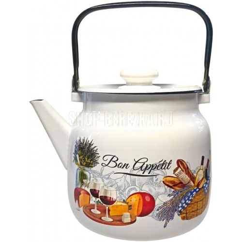 Подходит для всех видов плит: газовые, индукционные, электрические, стекло-керамические. Внешнее трехслойное эмалевое покрытие не вступает во взаимодействие с пищевыми продуктами, защищает сталь от коррозии, придает посуде гладкую стекловидную поверхность, устойчива к высоким температурам и надежно защищает от кислот и щелочей. Материал чайника - высококачественная нержавеющая сталь. Изделие произведено в России. Крышка плотно прилегает к краю, позволяющая долго не остывать воде. Подходит для мытья в посудомоечной машине. Приготовьте чай, кофе, какао и другие напитки, наслаждаясь великолепным дизайном чайника, который впишится в любой интерьер. Можно мыть в посудомоечной машине. Характеристики Кол-во в упаковке 1 Вид ручки Нержавеющий металл, подвижная Свисток нет Декор Есть Литраж 3,5 л. Материал Эмалированная сталь