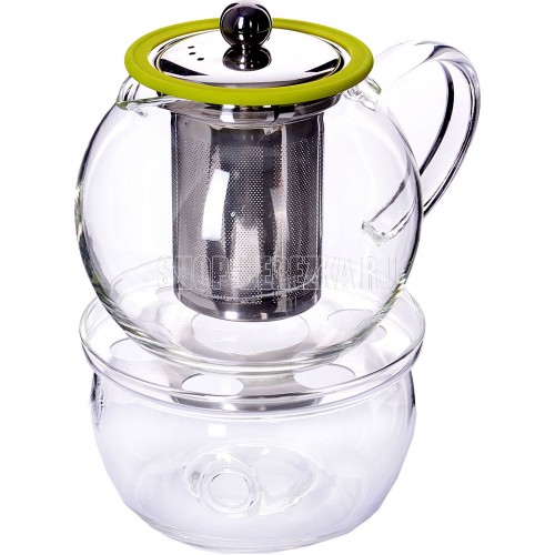 Чайник заварочный МВ (х12). Материал корпуса: боросиликатное стекло. Крышка: нержавеющая сталь. Фильтр: нержавеющая сталь, силикон. Колба д/подогрева: боросиликатное стекло. Подставка на колбе: нержавеющая сталь. Цвет: прозрачный, серебристый, салатовый. Объем: 800 мл. Высота чайника с крышкой: 13,5 см. Диаметр чайника (нижний): 12 см. Высота чайника с подогревателем: 19,5 см. Размер упаковки: 14,5 х 14 х 20,8 см. Упаковка: коробка. Вес: 590 г. Страна производитель: Китай.
