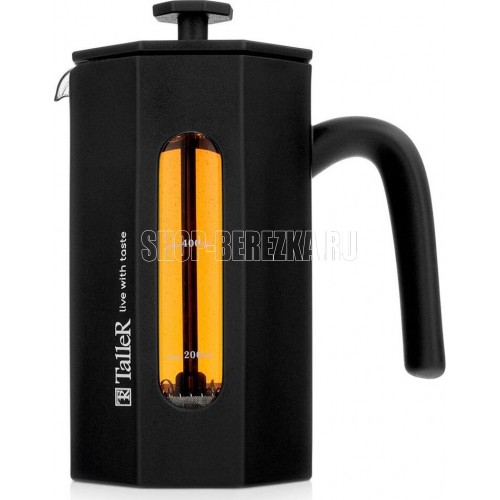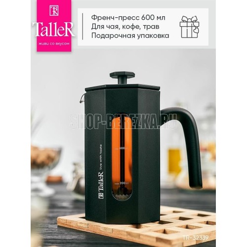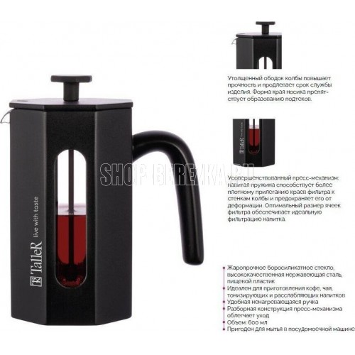 Френч-пресс из боросиликатного стекла 600 мл/ крышка нерж.сталь, Franco • Жаропрочное боросиликатное стекло, высококачественная нержавеющая сталь, пластик • Идеален для приготовления кофе, чая, тонизирующих и расслабляющих напитков • Удобная ненагре