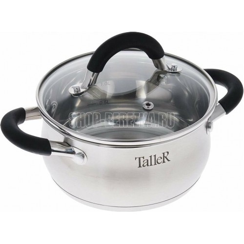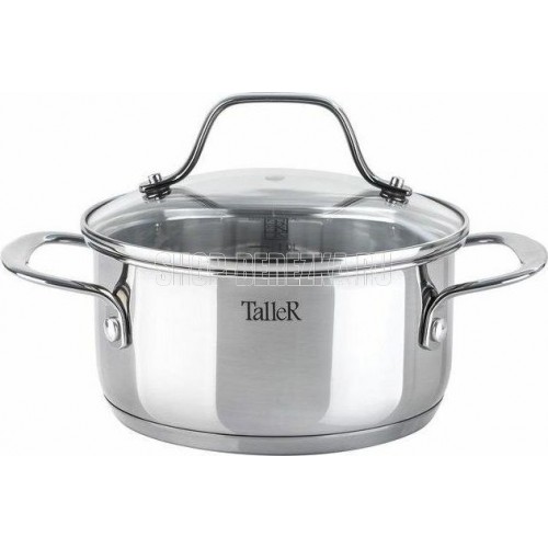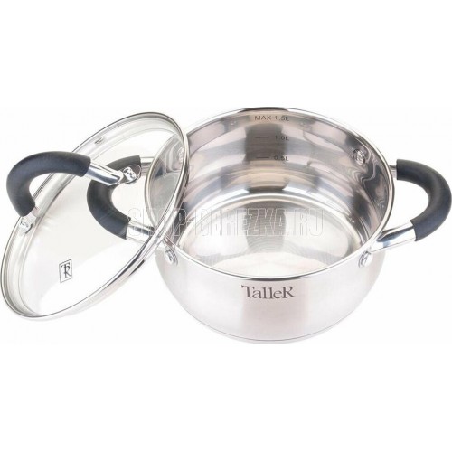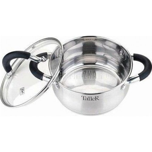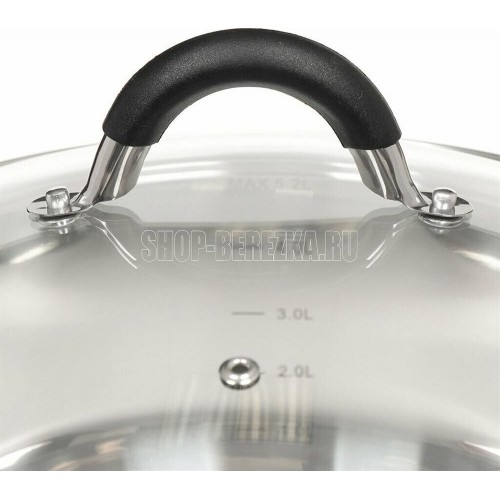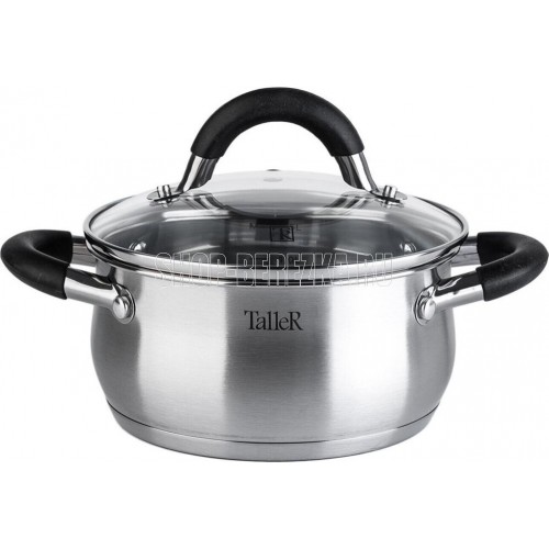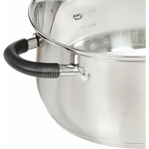Кастрюля с крышкой "Шелборн", 16*8 см, 1,5 л Толщина стенки — 0,6мм. Толщина дна 2.8мм. Полировка внешняя — матовая, внутренняя — зеркальная. Крышка из жаропрочного стекла со стальным ободом с отверстием для выхода пара. Комбинированные ручки с силиконовы