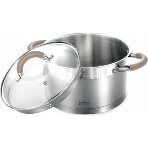 Материал - Нержавеющая сталь AISI 201. Полировка Комбинированная. Дно - Индукционное, Капсулированное. Мытье - В посудомоечной машине, Ручная мойка. Использование в духовке Нет. Отверстия для слива воды - 3 мм и 6 мм, сливной носик. Ручки - Нержавеющая сталь, Полые, Силиконовая отделка