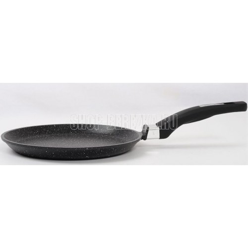 Сковорода блинная индукционная 24см с антипригарным покрытием и несъемной ручкой серии "Гранит black Induction Pro". Подходит для всех типов плит, можно использовать в посудомоечной машине.