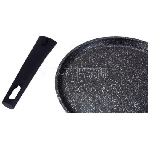 Сковорода блинная литая с антипригарным покрытием и съемной ручкой. Темный мрамор, 22см. Подходит ко всем видам плит, кроме индукции. Можно мыть в посудомоечной машине.