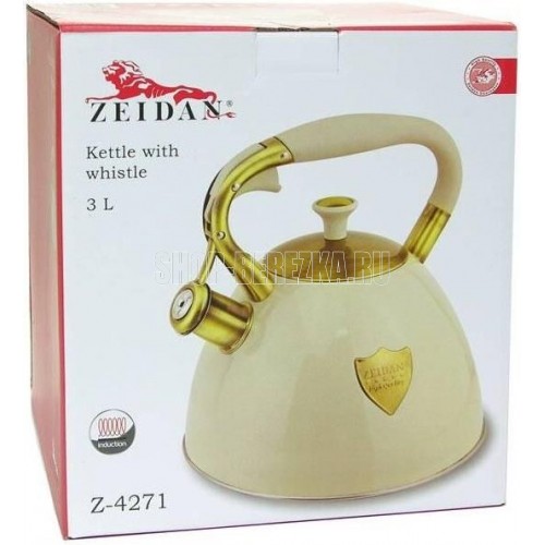 Чайник со свистком, 3,0 л, нержавеющая сталь, капсулированное индукционное дно, курковый механизм, внешнее покрытие - антипригарное цветное покрытие, устойчивое к высоким температурам, комбинированная ручка с покрытием "soft-touch", ДЕКОРАТИВНЫЕ ЭЛЕМЕНТЫ "ПОД БРОНЗУ". Подарочная упаковка.