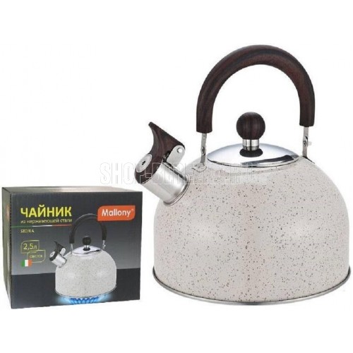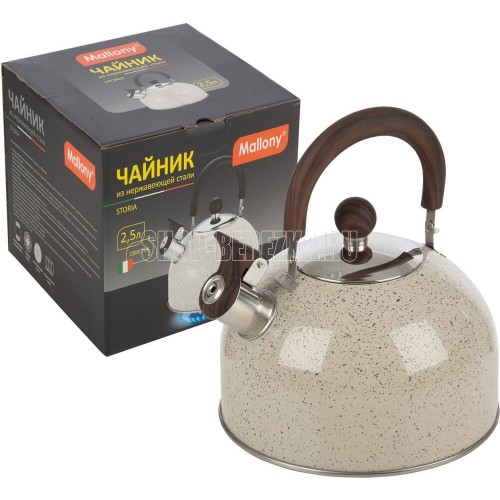 MALLONY Чайник STORIA, объем 2,5 л, из нерж стали со свистком, окрашенный, ручка под дерево (007190)