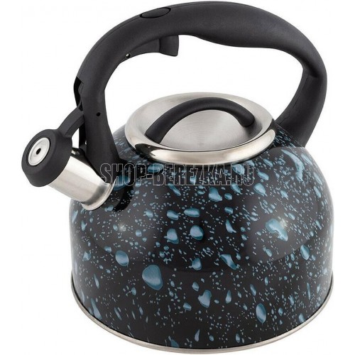 MALLONY Чайник из нерж стали LACRIMA, 2,5 л, со свистком, окрашенный (черный с синими каплями) (003979)