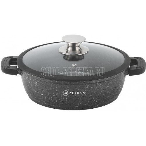 Жаровня со стеклянной крышкой – 4,8 л (d28х7,5см), литой алюминий, крышка - стекло с силиконовым ободком и металлической ручкой, ИНДУКЦИОННОЕ ДНО, СИЛИКОНОВЫЕ НАКЛАДКИ, ВНУТРЕННЕЕ АНТИПРИГАРНОЕ ПОКРЫТИЕ «Queen Home», ВНЕШНЕЕ ЖАРОПРОЧНОЕ АНТИПРИГАРНОЕ ПОКРЫТИЕ.