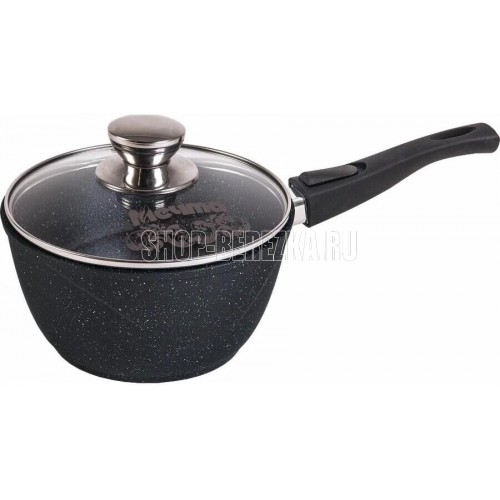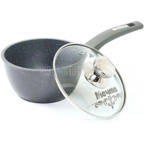 Ковш 1.7л с антипригарным покрытием, съемной ручкой и стеклянной крышкой серии "Гранит" Подходит для всех типов плит, кроме индукционных. Можно использовать в посудомоечной машине. Можно использовать в духовке отдельно без ручки и крышки.