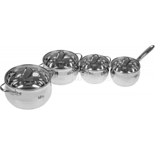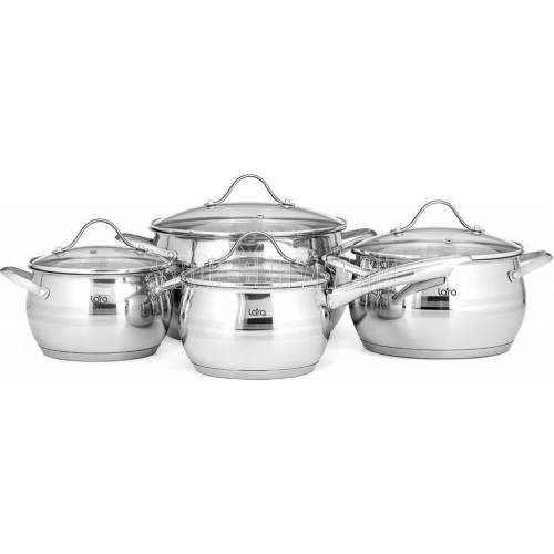 Высококачественная нержавеющая сталь Комбинированная полировка Многослойное термоаккумулирующее капсулированное дно Крышка из жаропрочного стекла Удобные ручки из высококачественной стали Экологически чистые материалы Подходит для использования на газовых, чугунных, стеклокерамических, галогеновых, индукционных конфорках Набор состоит из 8 предметов: 3 кастрюли 1 сотейник 4 крышки