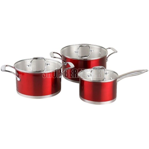 Набор кастрюль 20см, 24см и соусник 16см с крышками. Коллекция Prezioso. Набор изготовлен из высококачественной нержавеющей стали. 5- слойное капсульное энергосберегающее дно. Подходит для всех типов плит, включая индукционные. Ненагревающиеся ручки. Объ