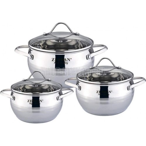 Набор посуды ZEIDAN Z-50624 6 предметов, Набор посуды, 6 предм. (3 КАСТРЮЛИ С КРЫШКАМИ: 2.1 Л (d16 см ), 3.0 Л (d18 см ), 4.0 Л (d20 см ), нержавеющая сталь, 3-x СЛОЙНОЕ КАПСУЛИРОВАННОЕ ИНДУКЦИОННОЕ ДНО, крышки - стекло, комбинированная полировка снаружи, зеркальная полировка внутри, шкала литража. Подарочная упаковка с пластиковой ручкой.