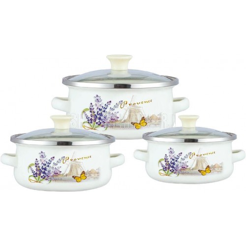 Набор мини-кастрюль, 6 предм. (3 КАСТРЮЛИ С КРЫШКАМИ: 0,5 Л (d12 см), 0.8 Л (d14 см), 1,2 Л (d16 см) с внутренним эмалированным покрытием), эмалированная сталь, внешнее покрытие - эмаль с рисунком. Подходит для индукции.