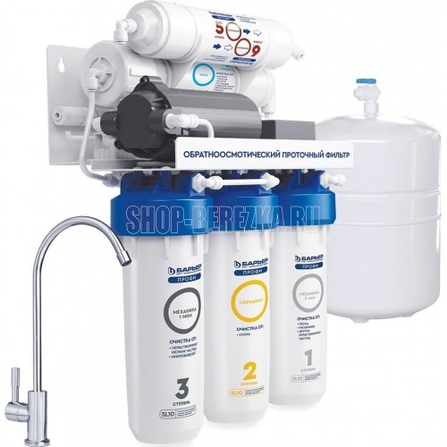 Система для очистки воды методом обратного осмоса с насосом повышения давления. Позволяет обеспечить семью кристально-чистой и водой, не уступающей по качеству бутилированной. Тип очистки воды обратноосмотическая система Объем 8 л. Ресурс 5000 л. Скорость фильтрации 0.34 л/мин. Количество картриджей в комплекте 5 шт. Система очистки пятиступенчатая. Рабочее давление до 7 атмосфер.
