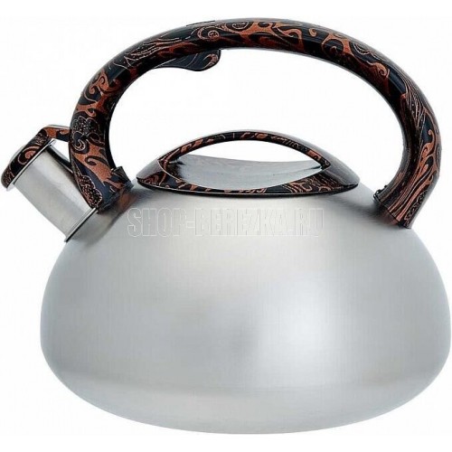 WEBBER BE-0594 со свистком 3л, сатин (12) Параметры Объем 3 л Толщина стали 0,6 мм Описание Чайник из нержавеющей стали со свистком Высококачественная нержавеющая сталь Матовая сатиновая полировка Индукционное дно Нейлоновая ручка с кнопкой открывания носика Цвет ручки и крышки: черный мрамор Пригоден для использования на всех типах кухонных плит, включая индукционные