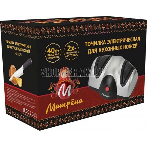 Быстрый и безопасный способ наточить ножи. 2-ступенчатая система заточки. Автоматически удерживает лезвие под нужным углом. Высокая скорость вращения. Заточка и хонингование. Работа от сети 220 В. Мощность 40 Вт.