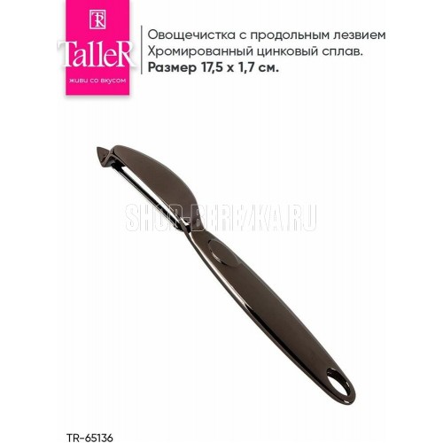 Овощечистка с продольным лезвием Материал: лезвие выполнено из нержавеющей стали, ручка из цинкого сплава Рекомендуеся ручная мойка