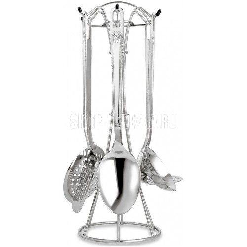 Кухонный набор ZEIDAN Z-2074 7 предм. , Кухонный набор 7пр. НЕРЖАВЕЮЩАЯ СТАЛЬ, металлическая подставка-туба, зеркальная полировка с рисунком (лопатка с прорезями, шумовка, половник, картофелемялка, поварская ложка, поварская вилка ). Подарочная упаковка.