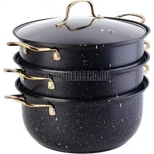 Мантоварка 4 пр МВ (x6). Материал: нержавеющая сталь с антипригарным покрытием. Цвет: черный. Диаметр: 30 см (6,4 л). Высота кастрюли: 12,5 см. Высота секции: 6 см. Высота в собранном виде: 30см. Крышка: сталь, стекло. Ручки: метал. Размер упаковки: 33,5 х 30,8 х 21,3 см. Упаковка: коробка. Вес: 2,65 кг. Страна производитель: Китай.