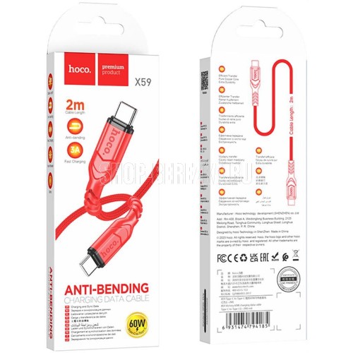 HOCO (6931474794154) X59 USB 3.0A 60W для Type-C Type-C Red 1 м