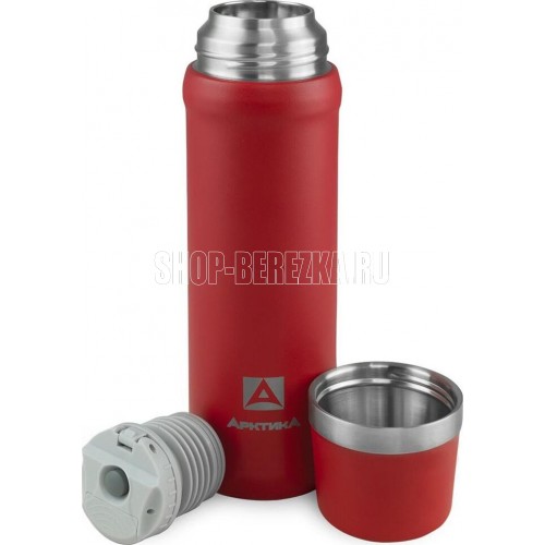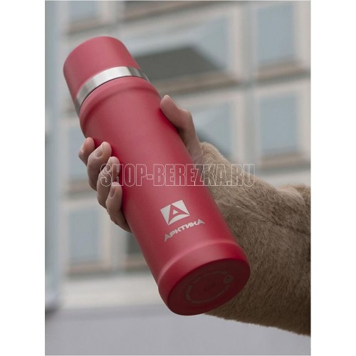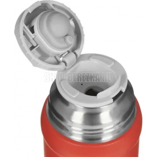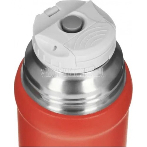 Термос классический для напитков с узким горлом и пробкой с кнопкой, объем 0,6 л.
