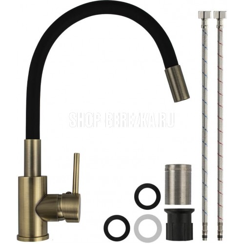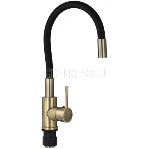 МАГНУС 92161 Смеситель для кухни, с гибким черным изливом, из нержавеющей стали марки 304, цвет корпуса БРОНЗА
