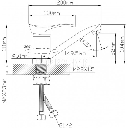 Изящный cмеситель для раковины из коллеции Delacroix. Однорычажный, корпус из латуни. Крепление на гайке, присоединительный размер - М28х1,5