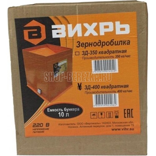ВИХРЬ ЗД-400 Тип дробилка Мощность 1.55 кВт Напряжение питания 220/240В Максимальная скорость вращения 12000 об/мин Объем загрузочного отсека 10 л Глубина 28 см Ширина 28 см Высота 31 см Вес 6.4 кг Дополнительная информация производительность 400 кг/час