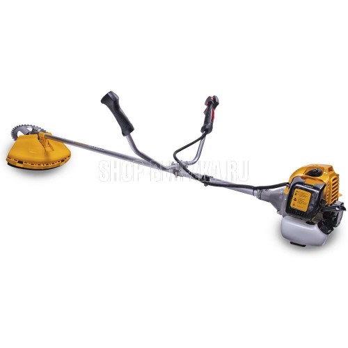 Триммер Champion Т523S-2 предназначен для продолжительных работ на участках. Укомплектван леской для травы и сорняков, металлическим ножом для жесткой травы. Оснащен U-образной рукояткой для удобного управления. Внутри штанги расположен жесткий вал, что гарантирует надежность триммера. Технические характеристики Champion Т523S-2 Объем двигателя, см? 51,7 Емкость бака, л 0,95 Режущий элемент леска/нож Габариты, мм длина 1493 Ширина скашивания, см 40/25.5 Вес, кг 8 Тип ручки U-образная (велосипедная) Тип двигателя бензиновый Частота вращения шпинделя, об/мин 6500 Тактность двигателя двухтактный Приводной вал жесткий Разборный вал нет Посадочный диаметр, мм 25.4 Крепление М10х1,25 LH Мощность (кВт) 1,4 Мощность (л.с.) 1,9 Толщина лески, мм 2.4 Потребление топлива при максимальной нагрузке, л/ч 0.62 Регулируемая штанга нет Уровень звукового давления, дБ 120 Свеча зажигания BM6А