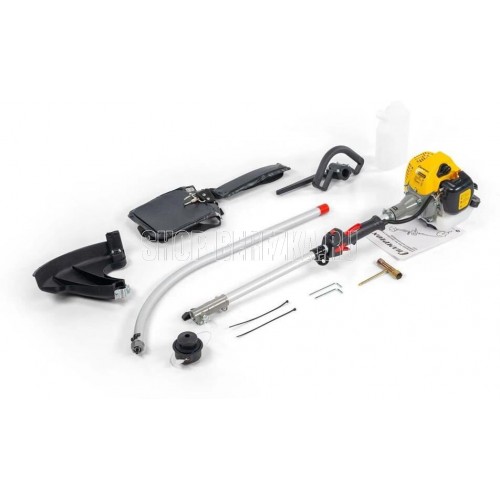 Мощность двигателя, (кВт/л.с.) 0,75 / 1,02 Объем двигателя, (см3) 25,4 Вес без режущей насадки, (кг) 5,2 Вид штанги Изогнутая Максимальные обороты без нагрузки, (об/мин) 7500 Обороты холостого хода, (об/мин) 2800±200 Объем топливного бака, (л) 0,75 Тип двигателя Двухтактный, одноцилиндровый с воздушным охлаждением Тип рукоятки Р-образная Тип штанги Разъемная Толщина корда, (мм) 1,8-2 Уровень вибрации на рукоятке, (м/с2) ?15 Уровень звукового давления, (дБ) ?120 Уровень мощности звука, (дБ) ?102