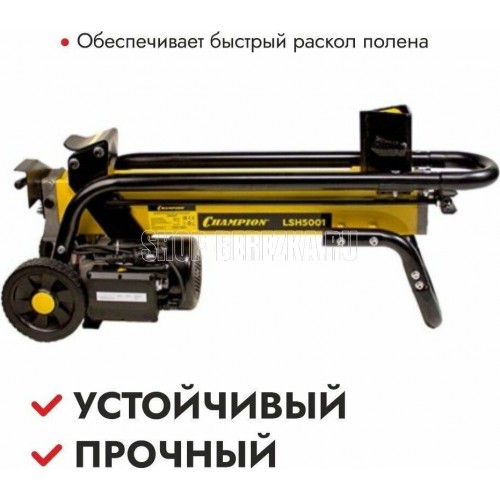Мощность 2,2 кВт, Напряжение сети 230/50 В, Гц, Усилие раскалывания 5 т, Двигатель электрический асинхронный, Расположение станины горизонтальное, Продолжительность нагрузки 40 %, Высота станины 470 мм, Диаметр полена 5-25 см, Длина полена 16,5-52 см, Объем масла в гидросистеме 3,6 л, Вес 45,4 кг, Уровень мощности звука 80 дБ.