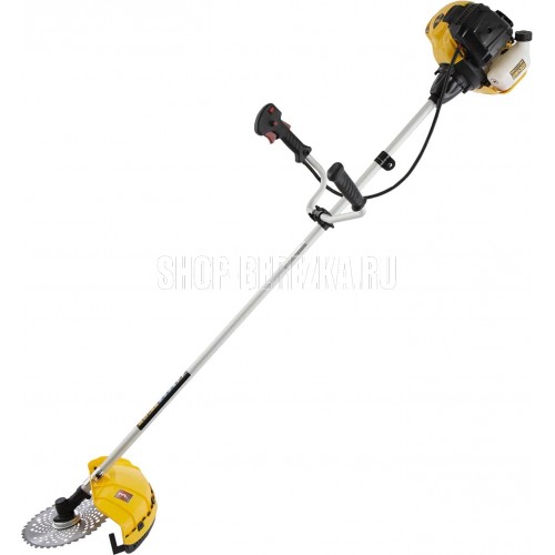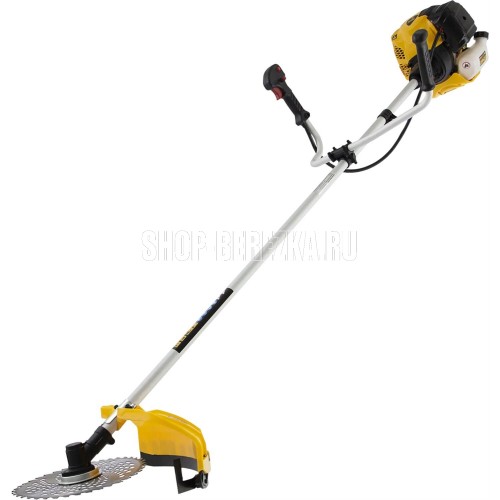 Тип двигателя бензиновый. Тактность двигателя двухтактный. Мощность 2.5 л. с. Максимальный диаметр лески 3 мм. Ширина скашивания леской 420 мм. Ширина скашивания ножом 255 мм. Крепление шпули M10 x 1.25 LH. Объем двигателя 43 см3. Режущий элемент нож, леска. Тип топлива смесь АИ-92 и масла. Тип ручки велосипедная. Тип катушки полуавтоматическая. Посадочный диаметр для установки диска 25.4 мм. Объем топливного бака 1.2 л. Частота вращения шпинделя 9500 об/мин. Уровень звукового давления 110 дБ. Потребление топлива при максимальной нагрузке 1.2 л/ч. Тип штанги неразъемная. Стартер ручной.