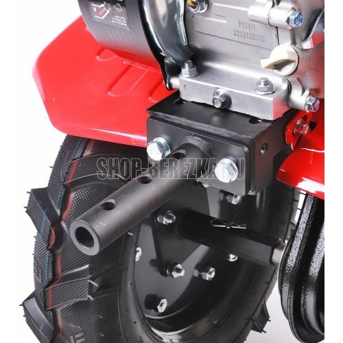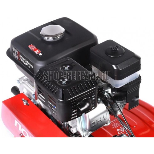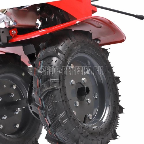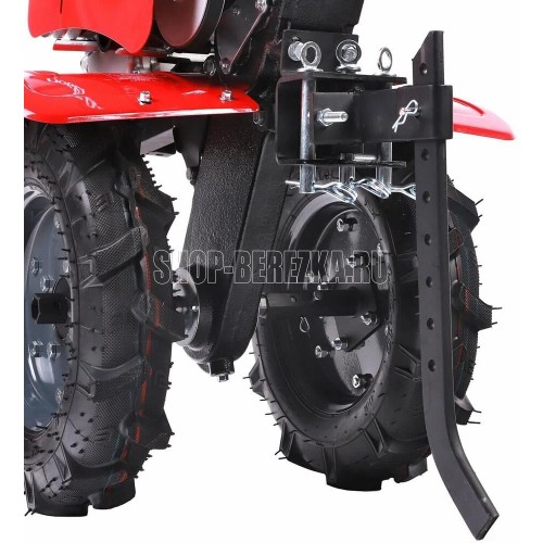 Технические характеристики: • Ширина обработки: 85 см • Глубина обработки: до 160/300 мм • Количество передач: 2 вперед/1 назад • Редуктор: чугунный цепной • Мощность двигателя: 7 л. с. • Объем двигателя: 208 см. куб • Объем топливного бака: 3,6 л • Объем масляного картера: 0,6 л • Объем картера редуктора:1,2 л • Пневматические колеса: 4.00-10 • Фрезы: 6 групп по 4 ножа • Механизм сцепления: клиноременное, путем нажатия ремня роликом • Система запуска: ручной стартер • Тип двигателя: 4-х тактный бензиновый • Тип топлива: бензин АИ-92 • Двигатель: 170FC • Свеча зажигания: F7TC • Приводной ремень: 17-950Li • Подключение активной навески: шкив