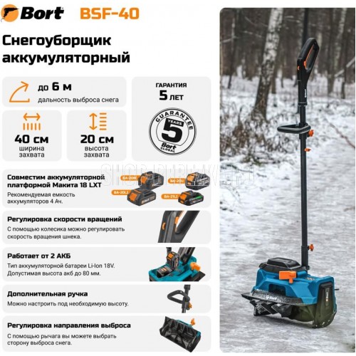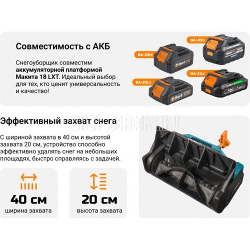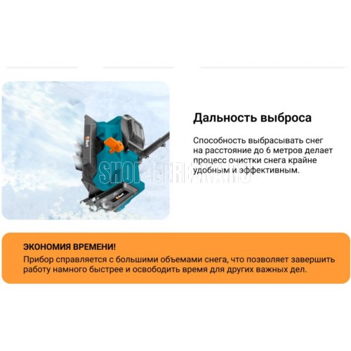 Снегоуборщик аккумуляторный; Высота захвата 20 см; Ширина захвата 40 см; Высота в разложенном состоянии 1430 мм; регулировка скорости; Скорость холостого хода 1660...2000 об/мин; тип двигателя Бесщеточный; Напряжение аккумуляторной батареи 36 В; Тип аккумуляторной батареи Li-Ion; Makita 18V LXT; Мощность 800 Вт; Дальность выброса ...6 м; ; Вес изделия 6,2 кг; Вес брутто=8,1 (Вес нетто=6,2) кг; 58 x 32 x 42; гарантия 2 г