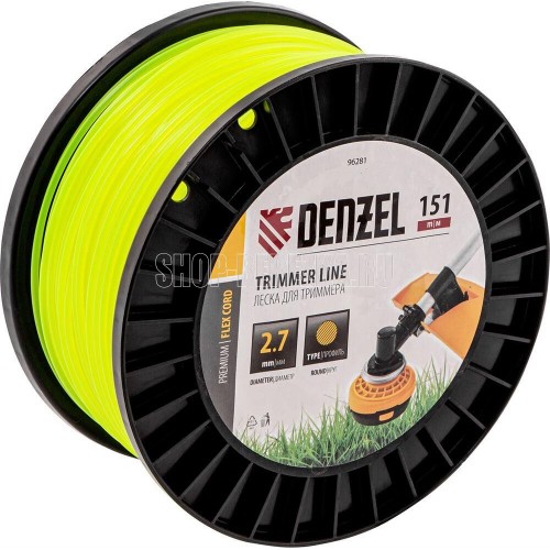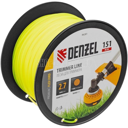 Леска для триммера Denzel FLEX CORD 96281 круглого сечения, диаметром 2,7 мм и длиной 151 м, на DIN-катушке, предназначена для скашивания как мягкой, молодой травы, так и более густой растительности. Подходит для бензиновых триммеров с объемом двигателя 25-52 см3 и электрических триммеров мощностью от 1 до 1,5 кВт.ПреимуществаСечение «круг» — леска устойчива к слеживанию, обладает высокой прочностью и экономично расходуется.Износостойкость — корд изготовлен из полиамида РА6 с добавлением полиамида BASF.Длина 151 м — лески достаточно для выполнения большого объема работ.Удобное хранение и транспортировка — концы лески можно закрепить в отверстиях DIN-катушки.