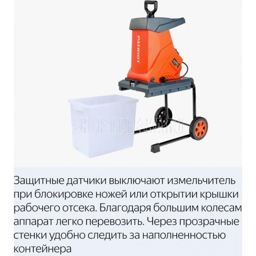 Объем мусоросборника, л 50 Мощность, Вт 2600 Тип двигателя электрический Макс. частота вращения ножей, об/мин 4500 Мусоросборник есть Измельчающая система режущий нож Материал корпуса пластик Материал для переработки ветки, листья, трава, кора, мягкие растения, солома Колеса есть Напряжение сети, В 220-230 Уровень шума при работе, дБ 111 Вес брутто, кг 16,1