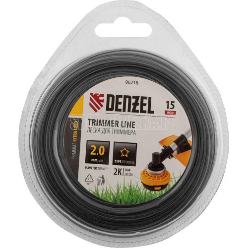 Двухкомпонентная леска для триммера Denzel FLEX CORD 96216 с сечением звезда, диаметром 2,0 мм и длиной 15 м, предназначена для скашивания крупностеблевой растительности. Позволяет эффективно справляться с работой даже на замусоренной территории. Используется на бензиновых триммерах с объемом двигателя 2552 см3 и электрических триммерах мощностью от 1 до 1,5 кВт.ПреимуществаПрочность леска изготовлена из полиамида РА6 с добавлением полиамида BASF.Повышенная стойкость к нагрузкам благодаря прочному нейлоновому сердечнику в эластичной оболочке значительно снижен риск повреждения и обламывания лески при соприкосновении с твердыми предметами, такими как камни.Высокая скорость работы благодаря сечению звезда трава срезается быстро и ровно.Экономичность корда длиной 15 м хватит на длительный срок.