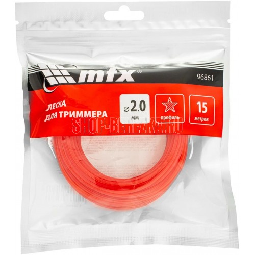Леска для триммера MTX 96861 с сечением «звезда», толщиной 2,0 мм и длиной 15 м, подходит для скашивания как мягкой газонной, так и жесткой травы.