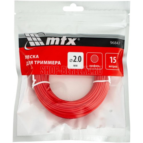 Леска для триммера MTX 96847 круглого сечения, диаметром 2,0 мм и длиной 15 м, предназначена для скашивания травы любой жесткости.