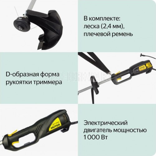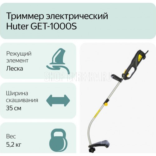 Электрический триммер Huter GET-1000S станет отличным помощником для любого владельца частного дома - данная модель быстро подстрижет газон, что упрощает уход за дворовой территорией. Особенность данной модели - компактные размеры и небольшой вес, что позволяет с комфортом выполнять стрижку газона. Мощность: 1000 Вт. Тип двигателя: электрический. Напряжение: 220 В. Частота: 50 Гц. Мощность двигателя: 1,36 л.с. Тип штанги: разъемная. Тип режущего инструмента: леска. Диаметр лески: 2 мм. Ширина скашивания: 350 мм. Обороты двигателя: 8000 об/мин. Уровень шума: 92 дБ. Габаритные размеры, Д?Ш?В: 960x240x180 мм. Масса, не более: 4,9 кг.