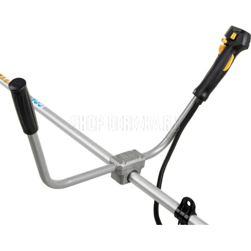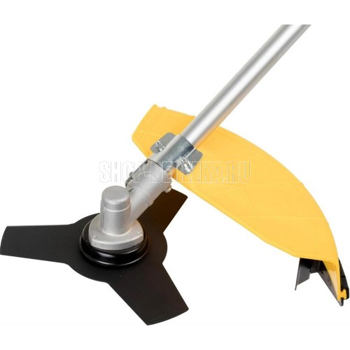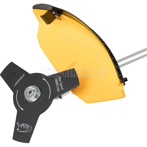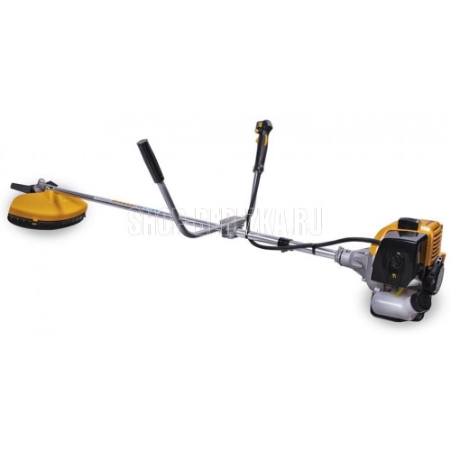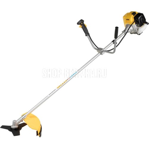 Мощность двигателя, (кВт/л.с) 1,25/1,7 Вес без режущей насадки, (кг) 6,9 Объем двигателя, (см3) 42,7 Объем топливного бака, (л) 1,2 Тип рукоятки U-образная Вид штанги прямая Тип штанги неразъемная Длина штанги, (мм) 1343 Толщина корда, (мм) 3 Нож, кол-во зубцов/диаметр/диаметр посадки, (мм) 3/255/25,4 Ширина кошения кордом/ножом, (мм) 400/255 Обороты холостого хода, (об/мин) 2800 Максимальные обороты без нагрузки, (об/мин) 9000.