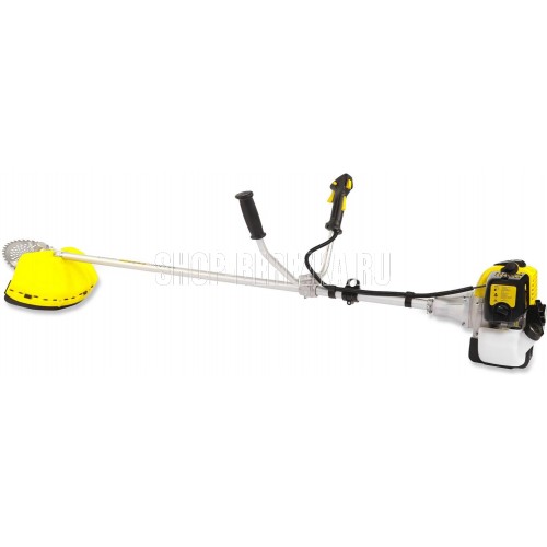 Мощность двигателя, (кВт/л.с.) 1,7/2,3 Объем двигателя, (см3) 47 Вес без режущей насадки, (кг) 8 Вид штанги прямая Нож, кол-во зубцов/диаметр/диаметр посадки, (мм) 40 / 255 мм / 25,4 мм Объем топливного бака, (л) 1,2 Тип двигателя Двухтактный, одноцилиндровый с воздушным охлаждением Тип крепления Гайка М10*1,25 левая Тип рукоятки U-образная Тип стартера Ручной, с облегченным запуском Тип штанги неразъемная Толщина корда, (мм) 2,4 Упаковка 2 коробки Ширина скашивания кордом/ножом, (мм) 418 / 255