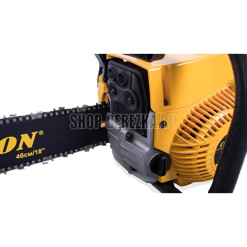 Номинальная мощность (ISO7293) 2,5 кВт, Объем двигателя 54,0 см3, Вес 5,6 кг, Шина 45 см. -18"-0,325-1,5-72 зв., Макс. количество оборотов 12500 об/мин, Натяжение цепи боковое, Автоматическая смазка шины и цепи, Легкий доступ к воздушному фильтру, Легкий запуск, Подогрев карбюратора, Металлический зубчатый упор.