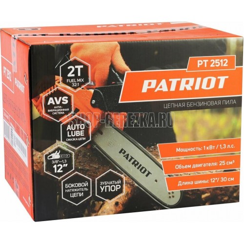 Объем двигателя, см3 25, Макс. мощность, л.с. 1,3, Мощность двигателя, кВт 1, Объем бака, л 0,2, Емкость масляного бака, л 0,2, Автоматическая смазка цепи, Система экстренной остановки, Количество звеньев, шт 44, Шаг цепи, дюйм 0,375, Длина шины, дюйм/см 12/30, Размер паза шины, мм 1,3, Прорезиненная рукоятка.