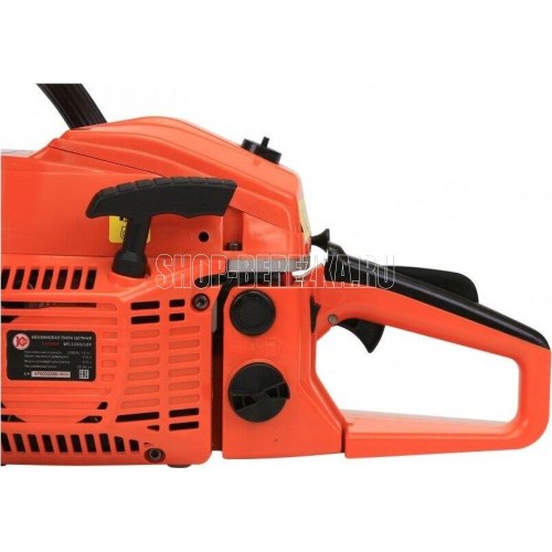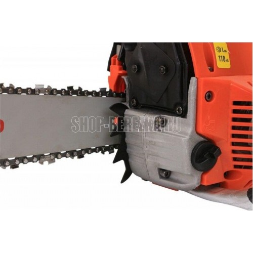 Максимальная мощность 2600 Вт/3,50 л.с. Шина 18 дюймов/45 см Цепь 3/8-1,3-64 Способ запуска Ручной стартер Тип двигателя 2-х тактный бензиновый с воздушным охлаждением Рабочий объём цилиндра 52,0 см3 Тип карбюратора Диафрагменный Зажигание Электронное (CDI) Обороты двигателя на холостом ходу 3000 ±150 об/мин Тип свечи зажигания Для 2-х тактных двигателей Способ подачи масла Автоматический, с отключением на холостом ходу, регулируемый Ёмкость масляного бака 0,26 л Тип топлива Смесь бензина АИ-92 (неэтилированного) с маслом Ёмкость топливного бака 0,55 л Тип тормоза цепи Ленточный, автоматический, инерционный Время срабатывания тормоза (не более) 0,15 с Средний уровень звуковой мощности 115 дБ(А) Вес (брутто/нетто) 6,5 / 6,0 кг