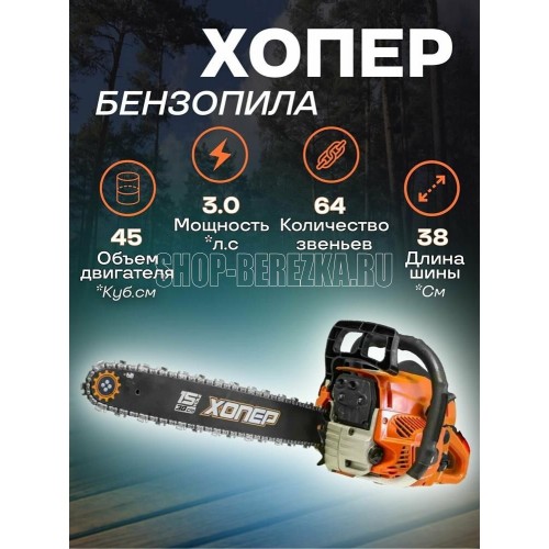 Мощность: 2,2 кВт Объём двигателя: 45 см3 Длина шины: 18 / 45 см Звеньев в цепи: 64 Шаг цепи: 8,25 мм / 0,325 Класс: бытовой
