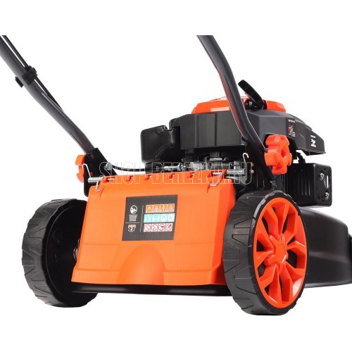 Мощность двигателя, л.с. 3.5. Объем травосборника, л 45. Тип двигателя 4-х тактный бензиновый. Ширина скашивания, см 41. Количество режимов регулировки высоты 3. Диаметр колес (передние/задние), мм 178/203. Материал корпуса сталь. Материал травосборника матерчатый. Тип топлива смесь 32: 1 (бензин АИ 92 + масло Patriot G-Motion).