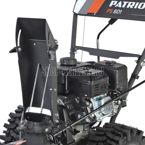 PATRIOT 426108601 PS 601 7 л.с ,стартер ручной, ковш 56см.; колеса 13х4,1-6 зимние; Вес, кг 60 Двигатель Patriot 168 F Емкость топливного бака, л 3 Max дальность выброса, м 10 Габариты, мм 1200х750х930 Диаметр шнека, мм 250 Тип двигателя 4-х тактный Стартер ручной Электростартер с питанием от бортового аккумулятора нет Наличие фары нет Разблокировка колес нет Самоходный да Система шнеков двухступенчатая Тип передвижения колесный Мощность (Вт) 4782 Мощность (л.с.) 6,5 Высота ковша, см 40 Ширина ковша, см 56 Подогрев ручек нет Модель двигателя 168 F Свеча зажигания A7RTC Скорости 5 вперед/2 назад Объем двигателя, см 196 Шнек металлический Обрезиненный шнек нет Угол поворота желоба для выброса снега, град 190 Щетка в комплекте нет Вес, кг: 57,00 Длина, мм: 582 Ширина, мм: 746 Высота, мм: 621