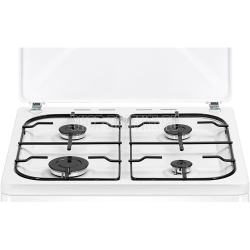 (ШхГхВ)63x60x87см.Цвет белый.Объем духового шкафа (л) 70.Комплект жиклеров для подключения баллоного газа (шт.) 1.Термометр.Крышка варочной поверхности металлическая.Электроподжиг.Типы подключаемого газа магистральный/балонный. Количество конфорок 4.Газ-контроль.Внутренняя подсветка.Материал корпуса эмалированная сталь.Количество стекол дверцы 2.Внутреннее покрытие черная эмаль.Тип управления механический.